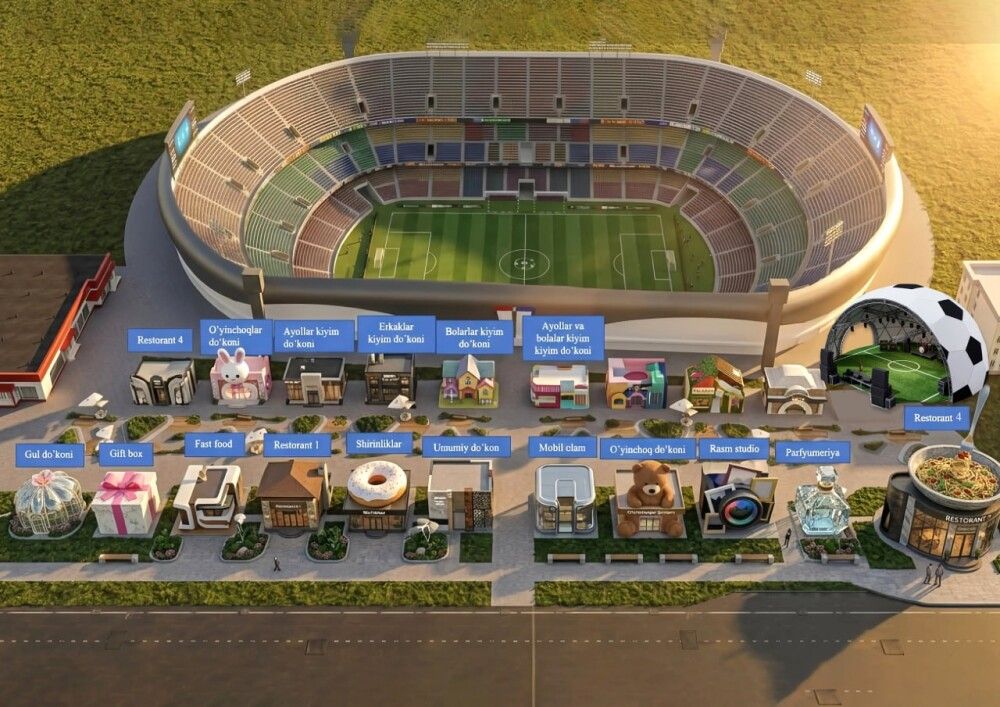 Rejaga ko'ra, stadion hududida kechayu kunduz, yani 24/7 formatda faoliyat yuritadigan zamonaviy majmualar barpo etiladi. Ushbu Istiqbolli loyiha “Makro Farm Andijon” korhonasi homiyligi ostida amalga oshiriladi. Bu esa stadionni faqat o'yin kunlari emas, balki har kuni hayot qaynaydigan markazga aylantiradi.