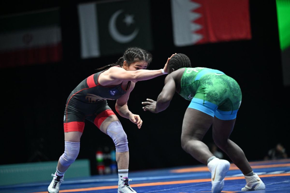 Biroz avval ayollar erkin kurashi dasturidan o'rin olgan final bellashuvlari boshlandi. Dastlab 50 kg vazn toifasida ishtirok etgan Aktenge Keunimjaeva nigeriyalik raqibasini 5:1 hisobida mag'lubiyatga uchratib, oltin medalni qo'lga kiritdi. Bu O'zbekiston delegaciyasining bugunning hisobidan birinchi, umumiy 80-medali bo'ldi.