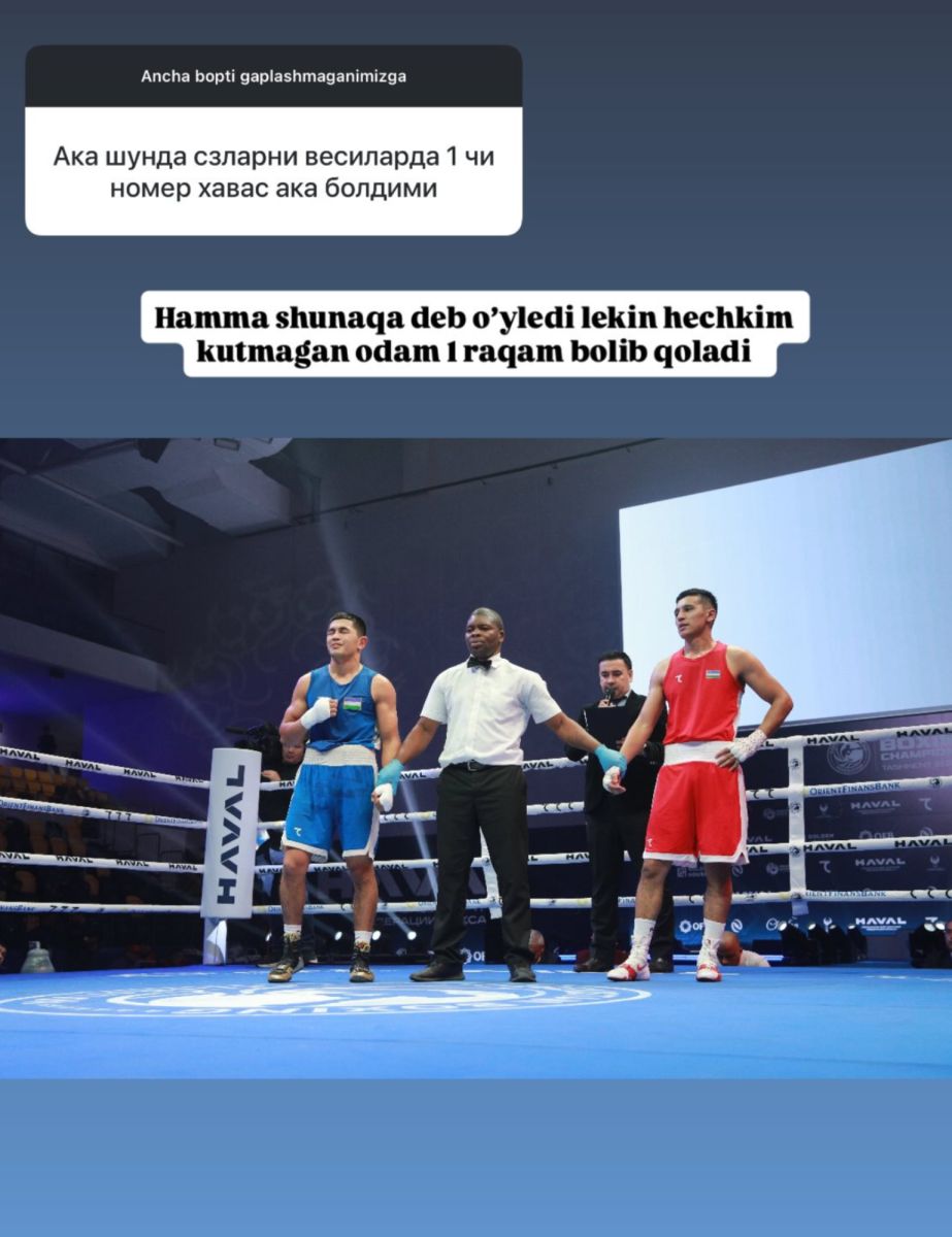 — Sizning vazningizda birinchi raqamli bokschi Havasbek Asadullaev bo'ldimi?