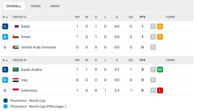 Indoneziya murosasiz kechgan 1-tur uchrashuvida Saudiya Arabistoni terma jamoasiga 2:3 hisobida imkoniyatni boy berib qo'ygandi. O'mon esa Qatar bilan durang o'ynagan edi - 0:0.
