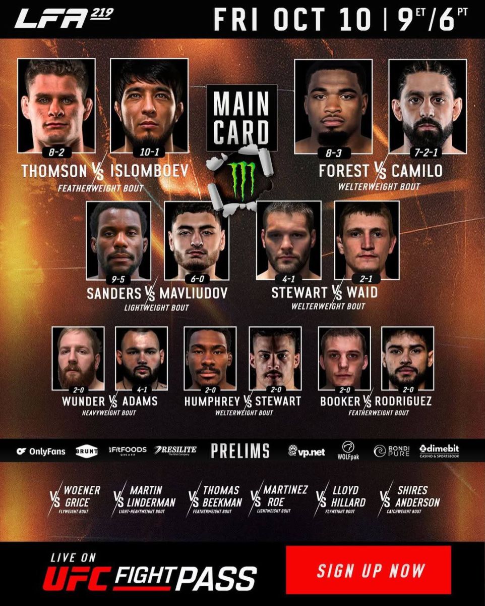 Markaziy jangi hamyurtimiz ishtirokida o'tadigan LFA 219 turnirining to'liq kardi bilan tanishing