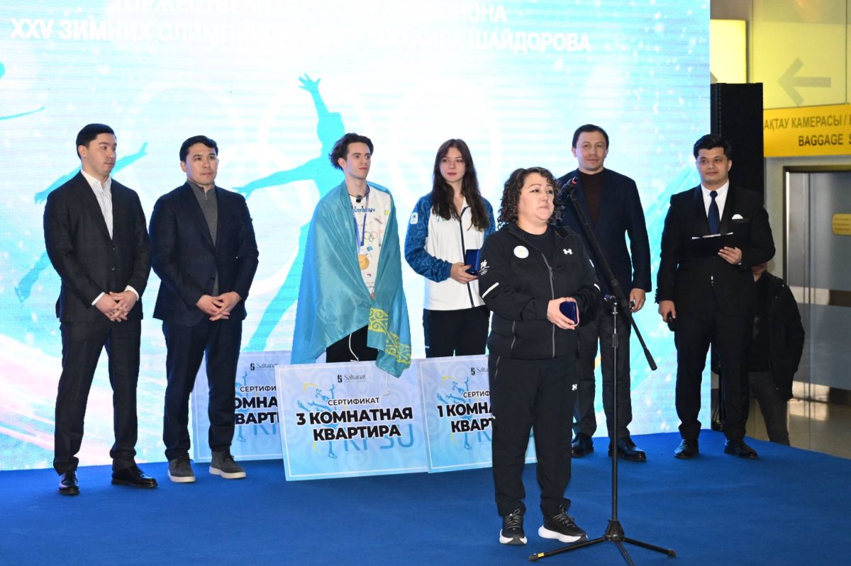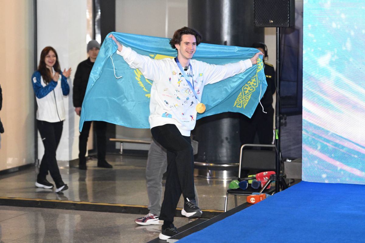 O'yinlarning asosiy qahramonlaridan biri Astana aeroportida tantanali ravishda kutib olindi.