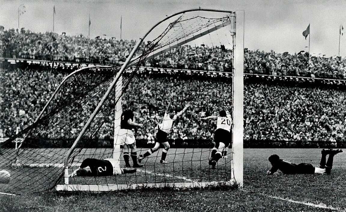 Jenevadagi o'yinni bir jumla bilan tariflash mumkin: yugoslavlar hujum qilishdi, nemislar esa gol urishdi. So'nggi Olimpiadaning kumush medali sohiblari butun uchrashuv davomida yaqqol ustunlikka ega bo'ldi. CHaqqon yugoslaviyalik hujumchilar 90 daqiqani faol o'tkazdi, ammo nemislar darvozaboni Turekga bas kelib bo'lmadi. Uning hamkasbi Beara esa birinchi bo'limda, aksincha, to'pga atigi bir marta — o'z jamoasi himoyachisi Xorvatning muvaffaqiyatsiz harakatidan so'ng to'pni to'rdan olib chiqayotganida tegindi. Uchrashuv so'ngiga kelib samarasiz hujumlardan toliqqan yugoslavlar holdan toydi va yana bir gol o'tkazib yubordi. Jahon chempioniga aylangan hujumchi Xans SHefer ushbu bahsni terma jamoaning eng qiyin o'yini deb atadi.