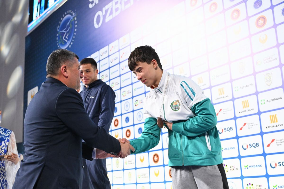 Musobaqaning taqdirlash marosimida Milliy Olimpiya qo'mitasi rahbariyati, shuningdek, erkin kurash bo'yicha Parij-2024 Olimpiadasi chempioni Razambek Jamalov ham ishtirok etib, shohsupaga ko'tarilgan sportchilarimizni qutladi.