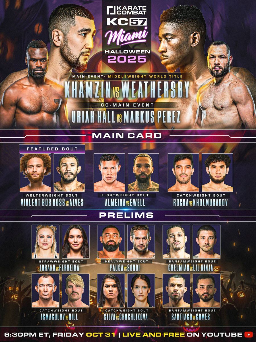 Malum qilganimizdek, 1 noyabr tongida AQSHning Mayami shahrida jangovar karate bo'yicha Karate Combat 57 turniri bo'lib o'tadi.