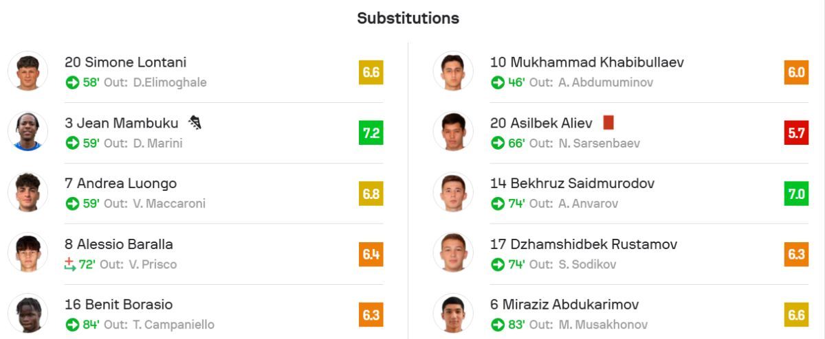 Sofascore nashri kechagi uchrashuv uchun futbolchilarimizni quyidagicha baholadi.