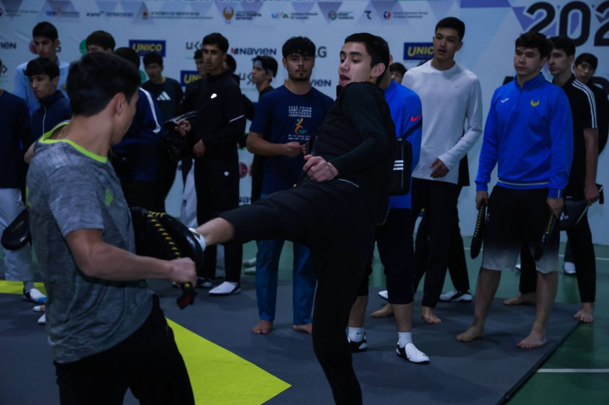 "Universal" sport saroyida o'tkazilayotgan yilning ilk o'quv-mashg'ulot yig'inida jami 45 nafar taekvondochilarimiz ishtirok etishmoqda. Mashg'ulotlar kuniga ikki mahaldan o'tkazilib, unda asosan, sportchilarning texnik va taktik ko'nikmalari ustida ishlanmoqda.