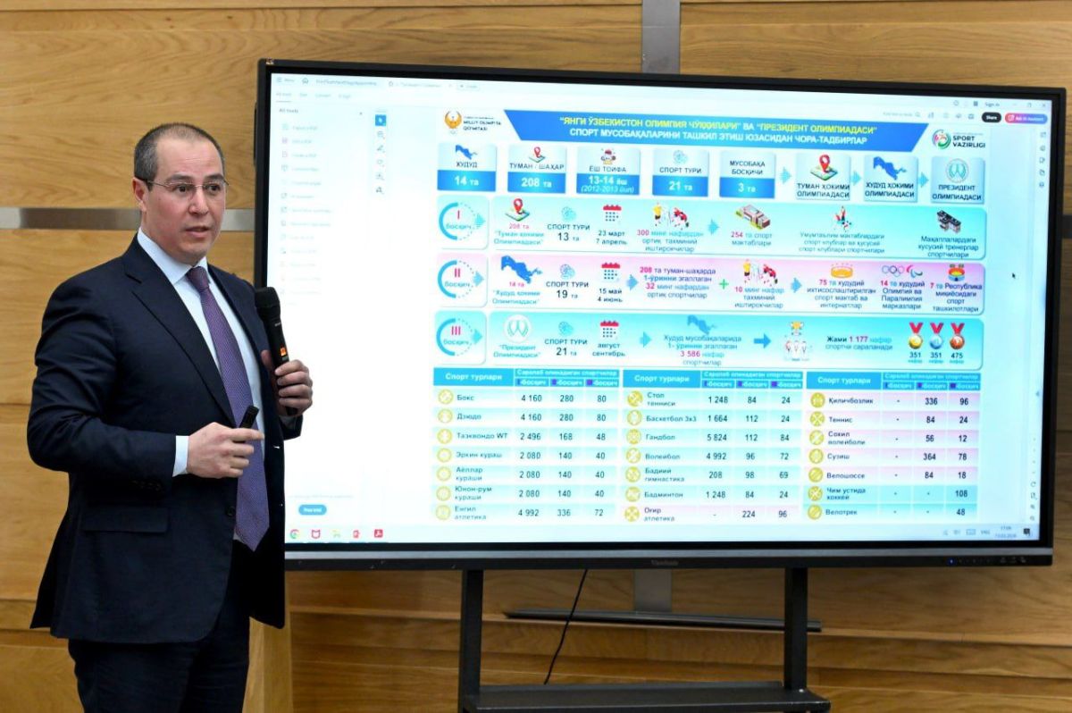 O'zbekiston Respublikasi Sport vazirligi, Milliy Olimpiya qo'mitasi va Toshkent shahar hokimligi rahbariyati ishtirokida poytaxtimizda jismoniy tarbiya va sportni yanada rivojlantirishga bag'ishlangan kengaytirilgan yig'ilish bo'lib o'tdi.