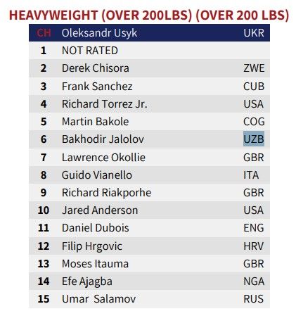 В супертяжелой категории Баходир Жалолов с 7 места поднялся на 6 место.