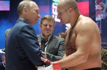 Россия Федерацияси спорт вазири Михаил Дегтярев афсонавий MMA жангчиси Фёдор Емельяненкога самбо бўйича "Россияда хизмат кўрсатган мураббий" унвонини топширди.