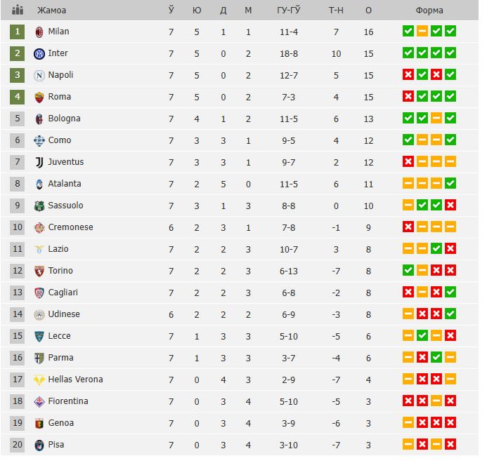 "Жузеппе Меацца" стадионида салкам 80 минг мухлис кўз ўнгида кечган учрашувда "россонерилар" 2:1 ҳисобида зафар қучишди. Рафаэль Леаонинг дубли "Милан"ни 16 очко билан А Серия пешқадамига айлантирди. "Интер", "Наполи" ва "Рома" клублари ҳисобида 15 очкодан бор.