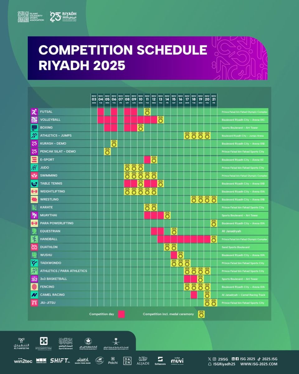 Ар-Риёд-2025 VI Ислом бирдамлик ўйинларининг тўлиқ тақвими билан танишинг: