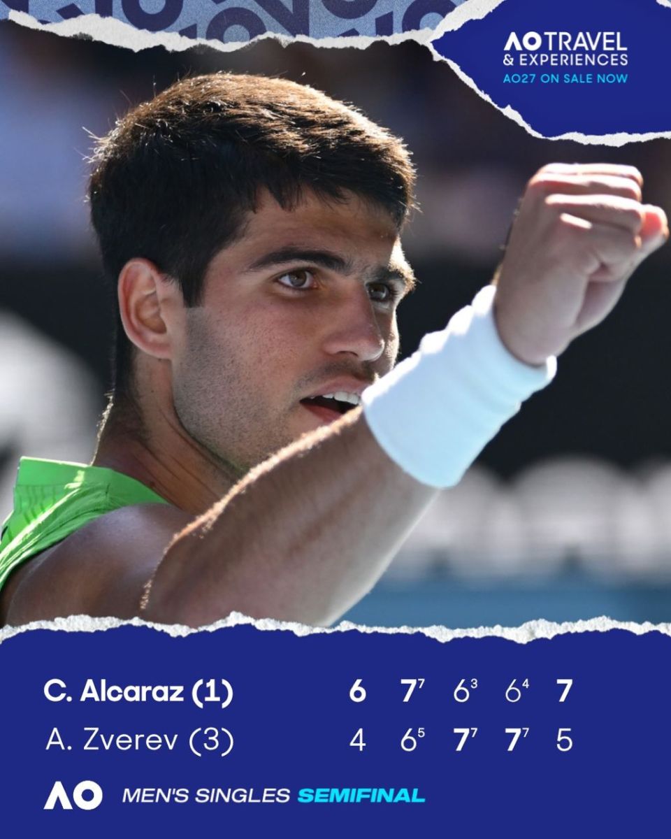 Australian Open. 326 дақиқа давом этган Алькараз - Зверев учрашувида илк финалчи аниқланди
