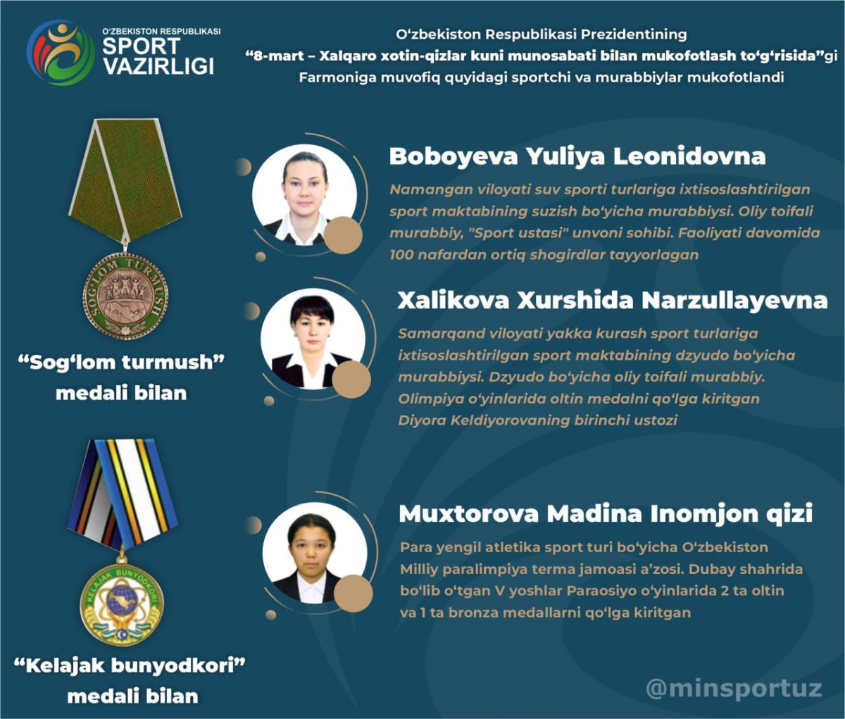 Бир қатор спортчи ва мураббийлар Давлат мукофотлари билан тақдирланди