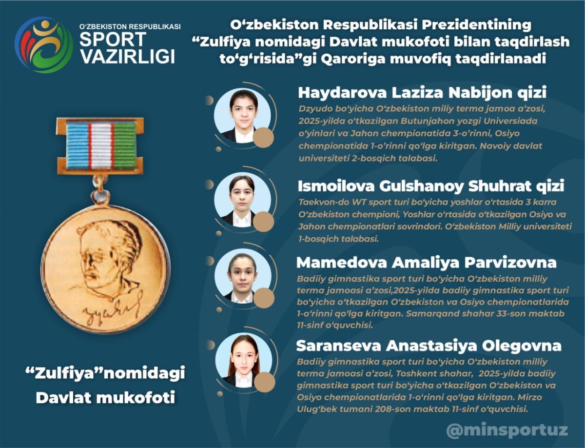 Зулфия номидаги Давлат мукофоти билан тақдирланади:
