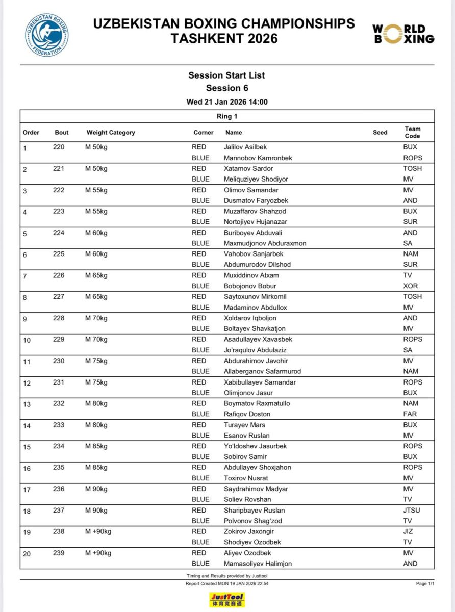 Баҳслар "Олимпия шаҳарчаси"даги Яккакурашлар спорт залида ўтказилмоқда. Ярим финаллар соат 14:00да бошланади.