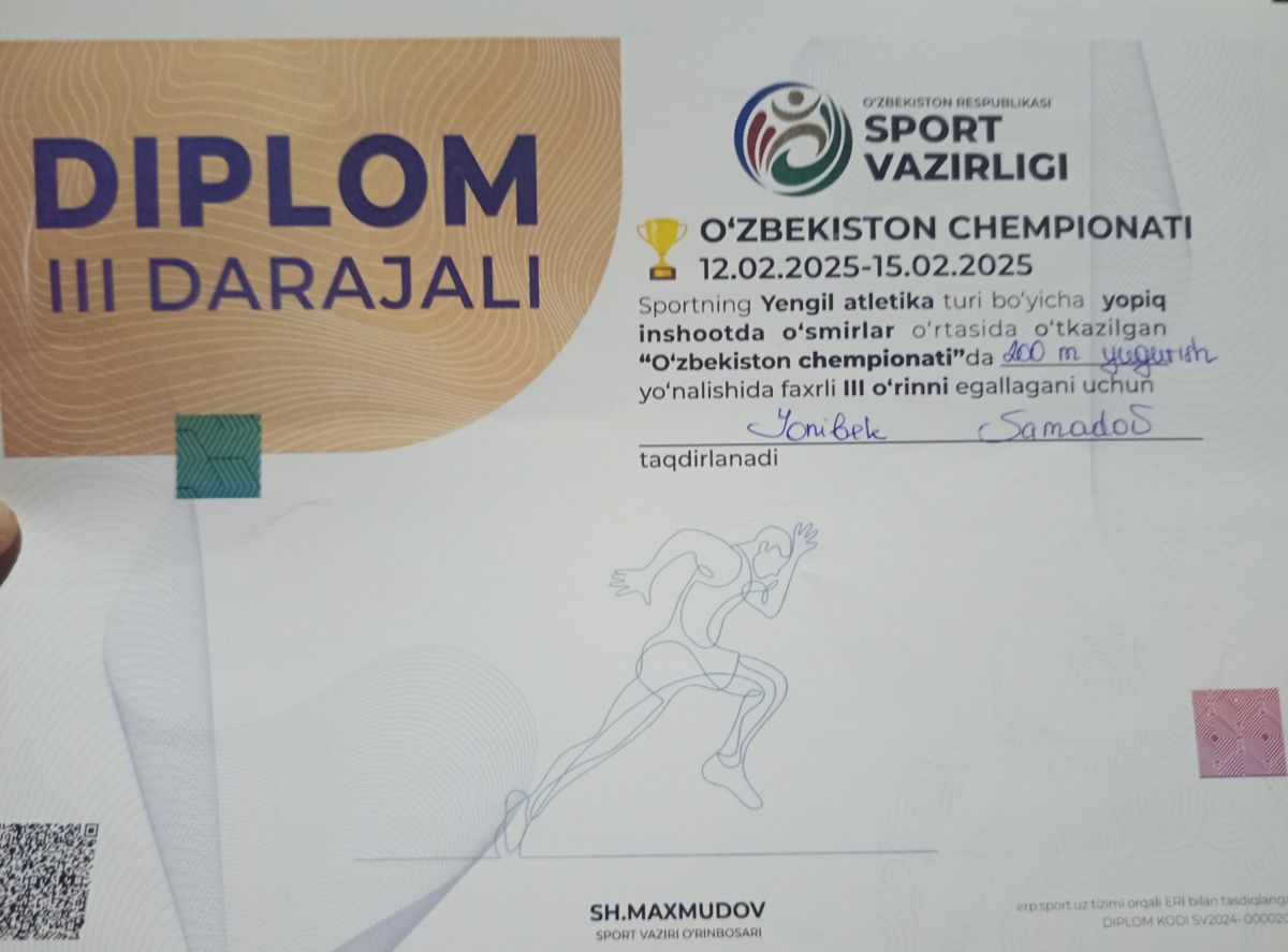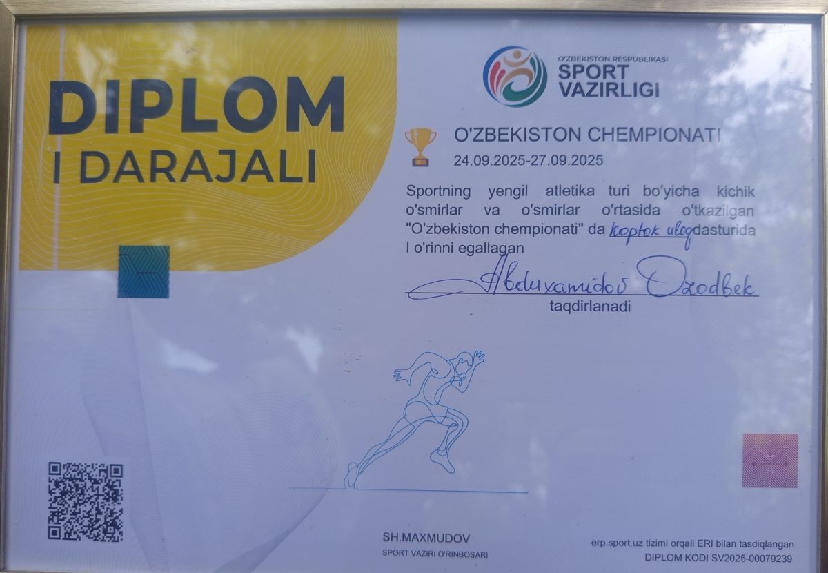 Жорий йилги Республика чемпионатларида Бехруз Худойназаров, Жонибек Самадов, Муҳаммадали Жобборов, Давлатбек Самадов, Озодбек Абдихомидов каби спортчилар енгил атлетиканинг турли йўналишларидан олтин, кумуш ва бронза медалларига сазовор бўлишиб, спорт мактабининг фахрига айланишди.