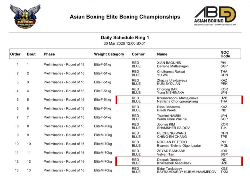Бугун икки боксчимиз Осиё чемпионатида жанг қилади