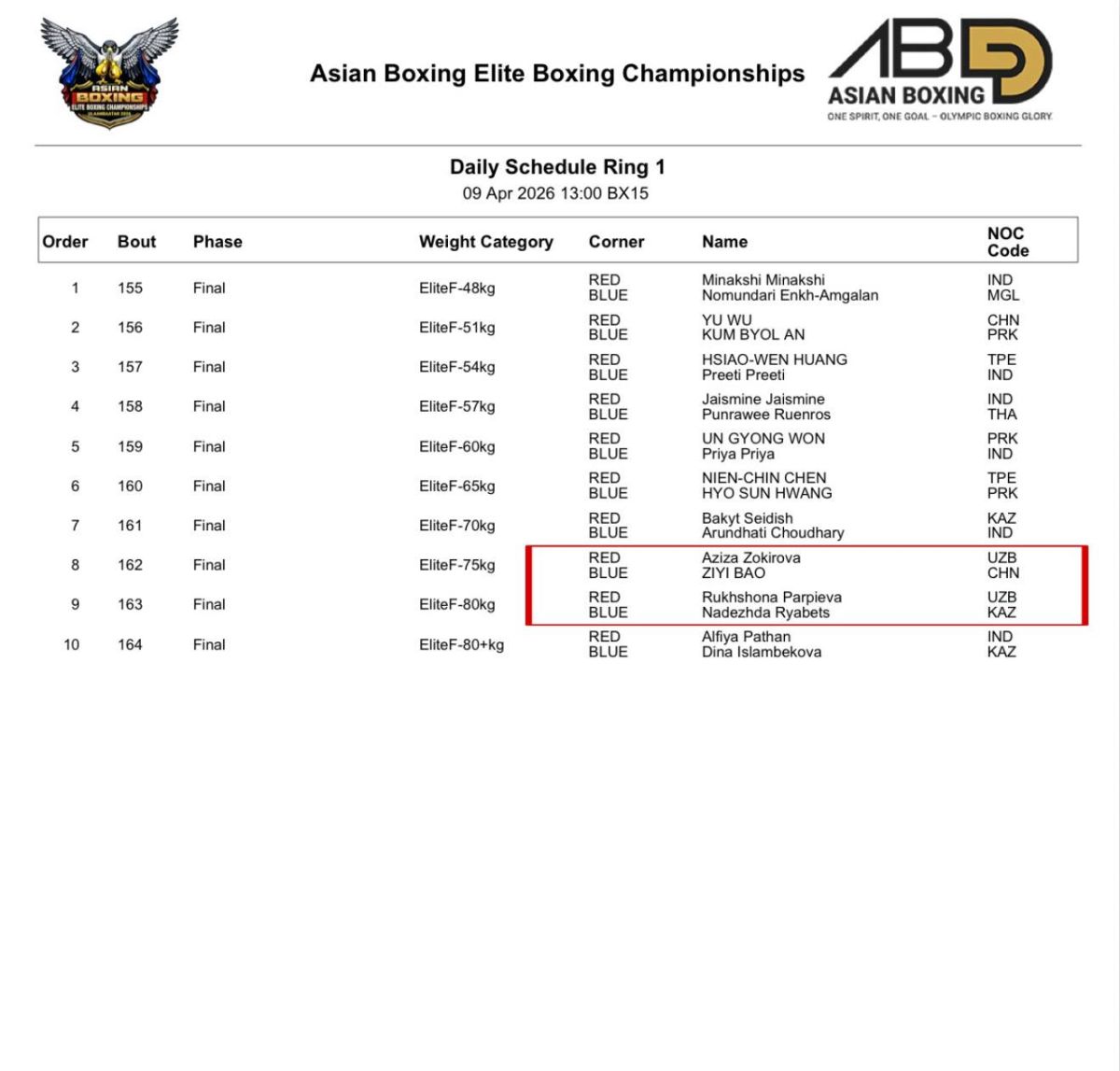 Унда икки нафар ҳамюртимиз олтин медаль йўлида рингга кўтарилади: