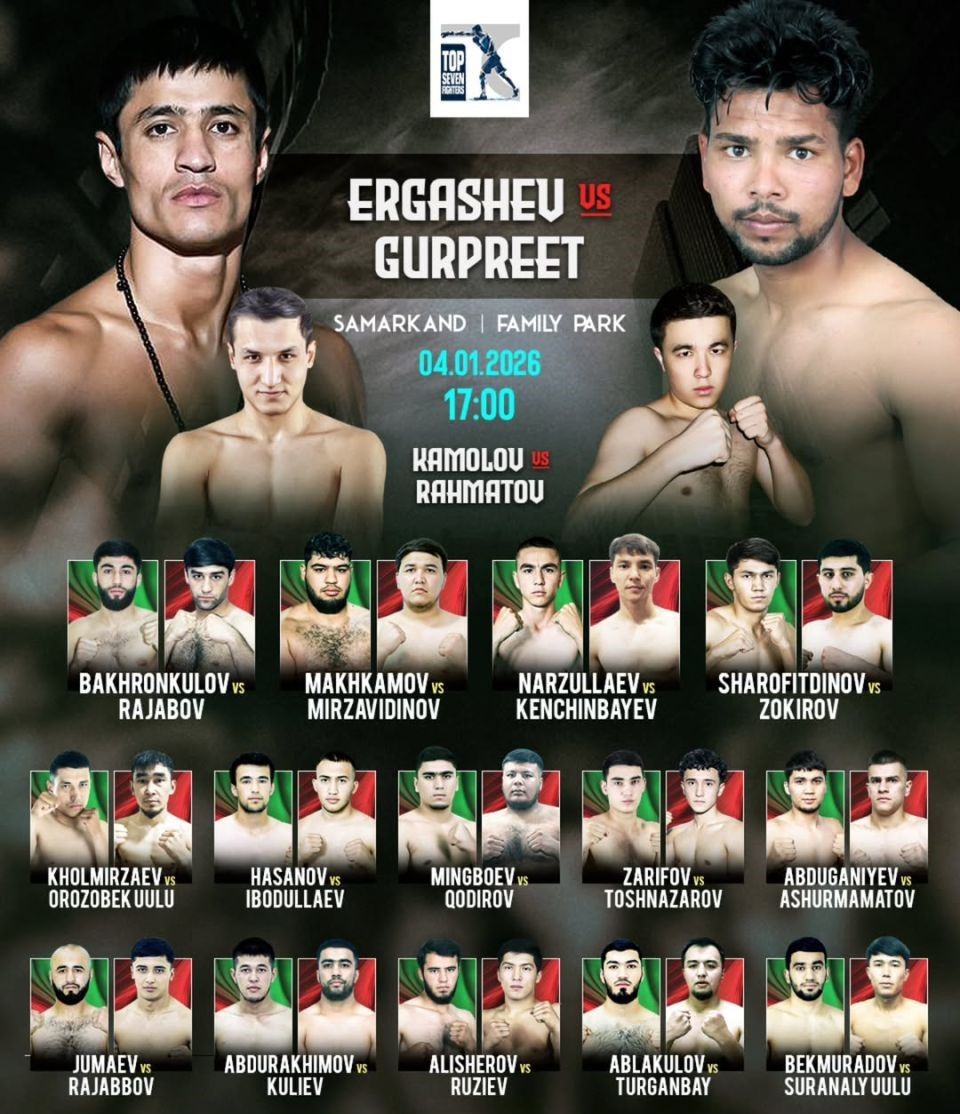 Самарқанд шаҳридаги Family Park мажмуасида Top Seven Fighters промоутерлик компанияси томонидан профессионал бокс турнири бўлиб ўтади.