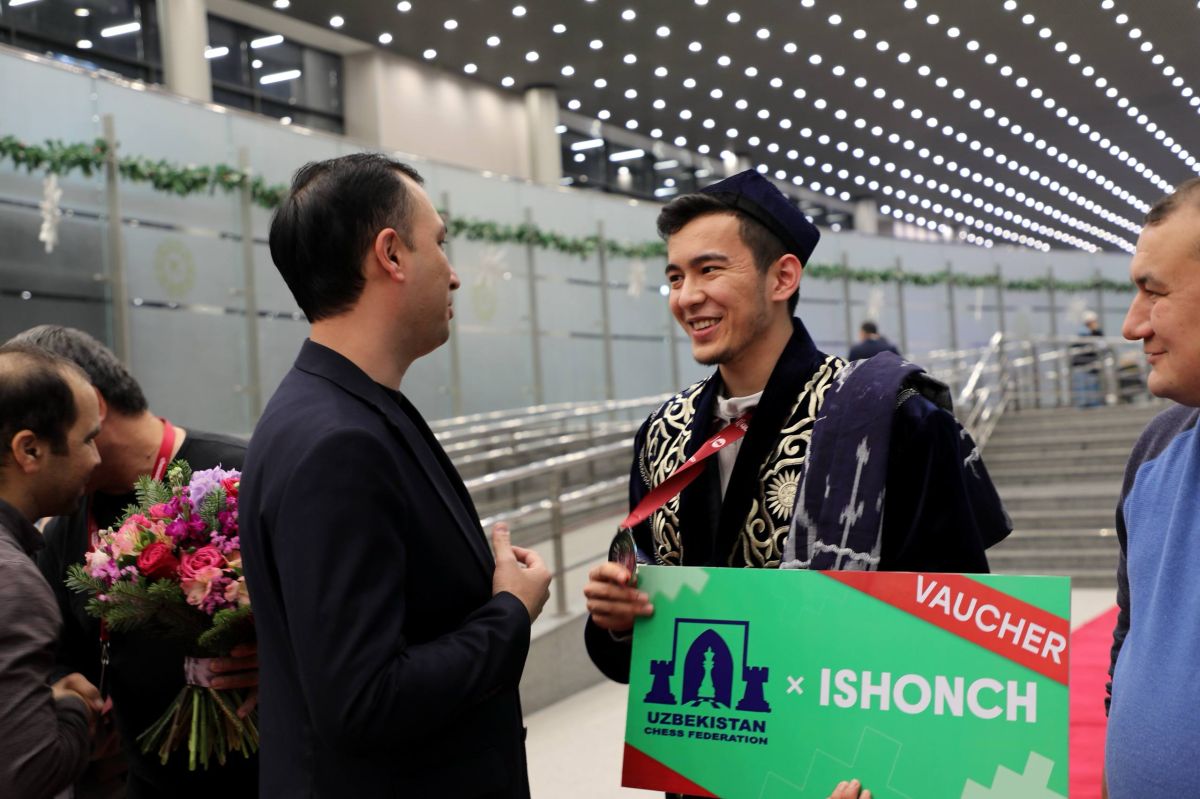 25-31 декабрь кунлари Қатарнинг Доҳа шаҳрида бўлиб ўтган шахмат бўйича Рапид ва Блиц йўналишларидаги FIDE Жаҳон чемпионатида муносиб иштирок этган Ўзбекистон терма жамоаси аъзолари Тошкент халқаро аэропортида кутиб олинди.