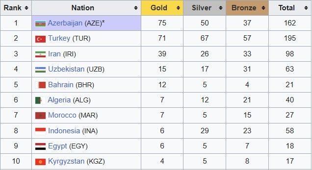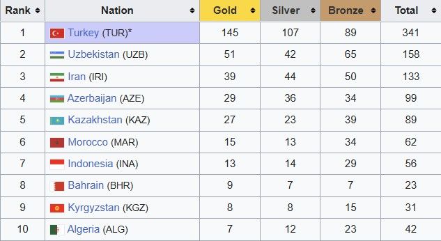 Конья-2021 ҳозирча Ўзбекистон терма жамоаси учун мазкур ўйинлар тарихидаги энг муваффақиятлиси ҳисобланади. Ўзбекистон мазкур мусобақада 265 нафар спортчи билан қатнашиб, 51 та олтин, 42 та кумуш ва 65 та бронза медалларини қўлга киритган. Бу натижа орқали делегациямиз умумжамоа ҳисобида иккинчи ўринни банд этган. Бу борада биринчи ўринни мезбон Озарбайжон, учинчи ўринни эса Эрон терма жамоаси банд этган.
