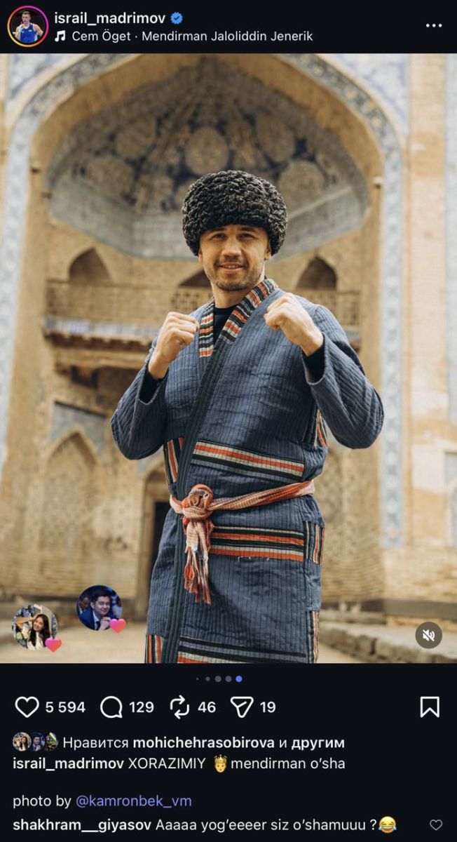 Профессионал боксчимиз Исроил Мадримов ижтимоий тармоқдаги саҳифасига суратлар жойлади, Шаҳрам Ғиёсов эса бунга ўз муносабатини билдирди.