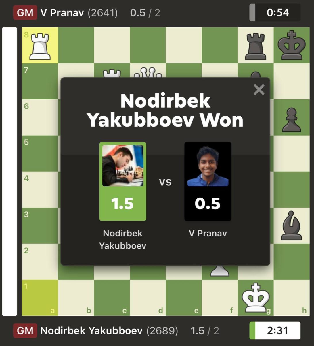 Нодирбек Якуббоев — Венкатеш Пранав (Ҳиндистон) - 1,5:0,5