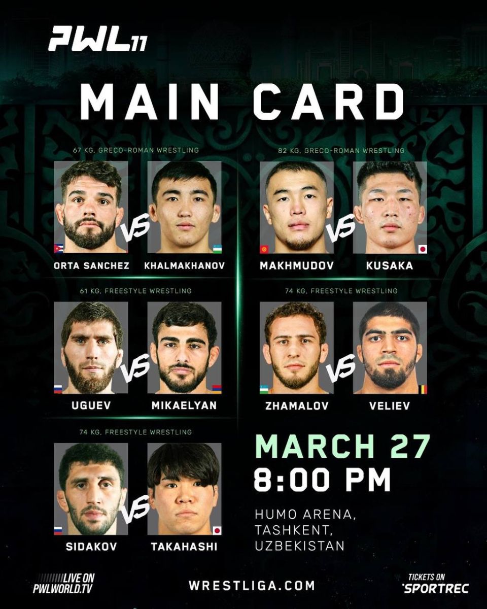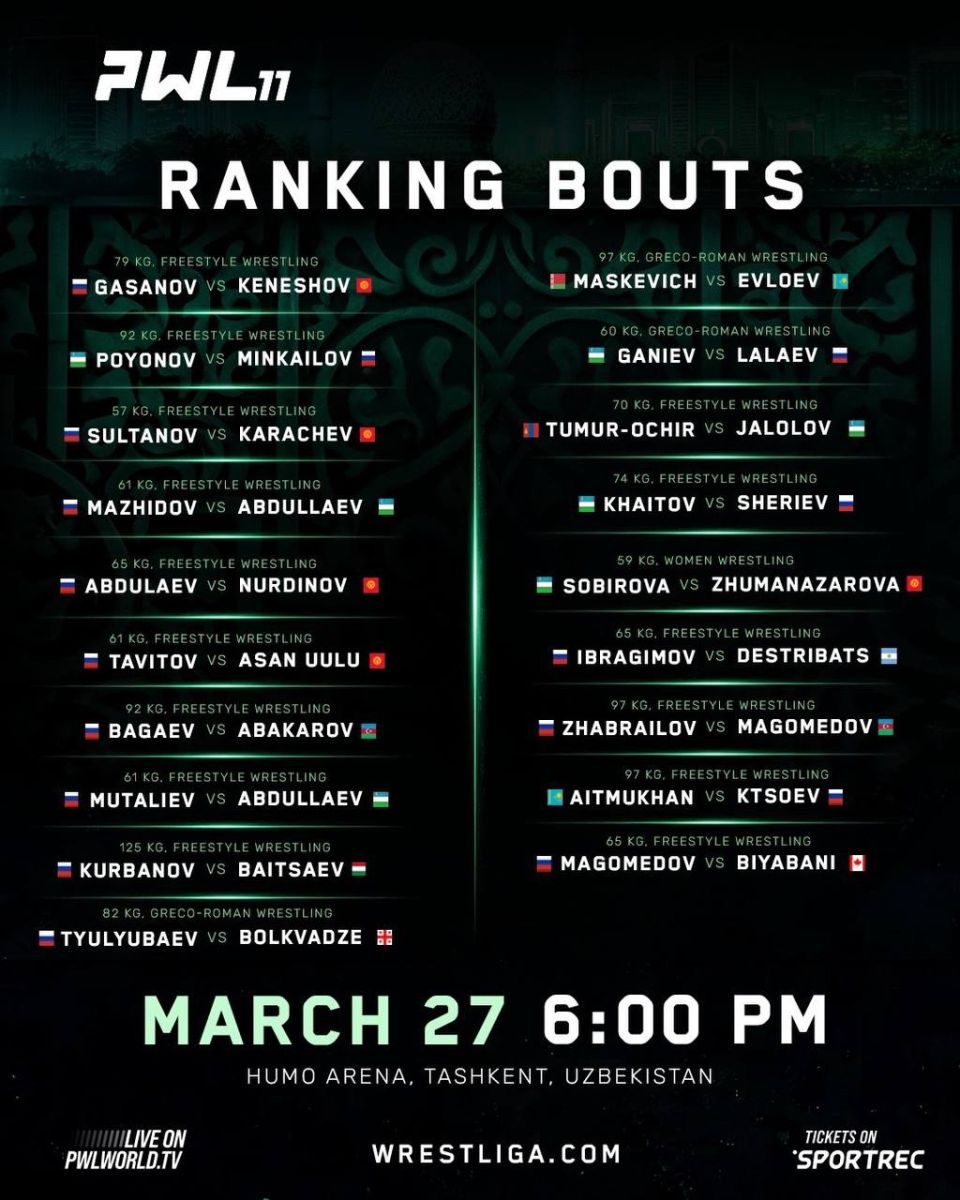 27 март куни "Ҳумо арена" мажмуаси спорт курашлари бўйича PWL 11 мусобақасига мезбонлик қилади.