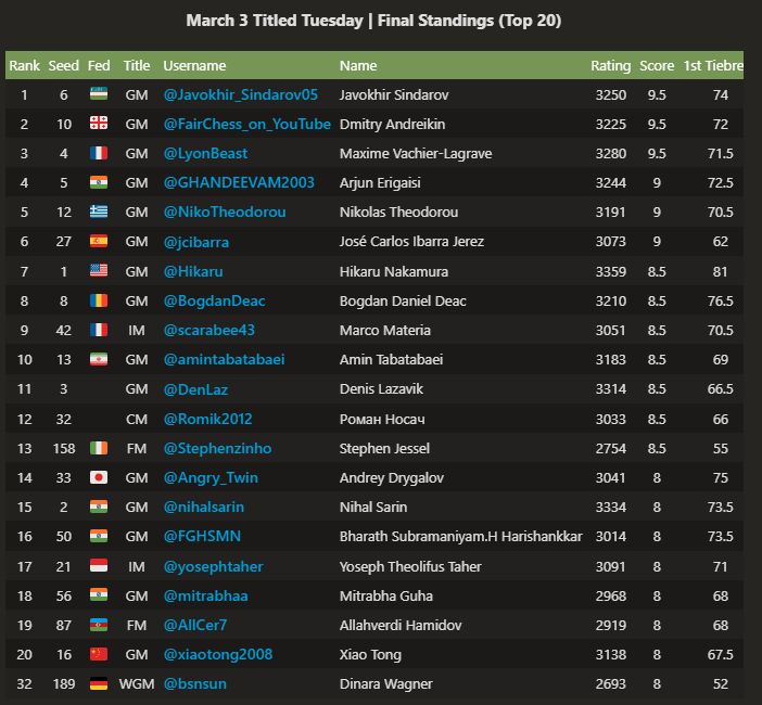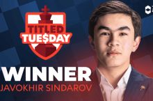 Жавоҳир Синдаров Titled Tuesday турнири ғолиби!