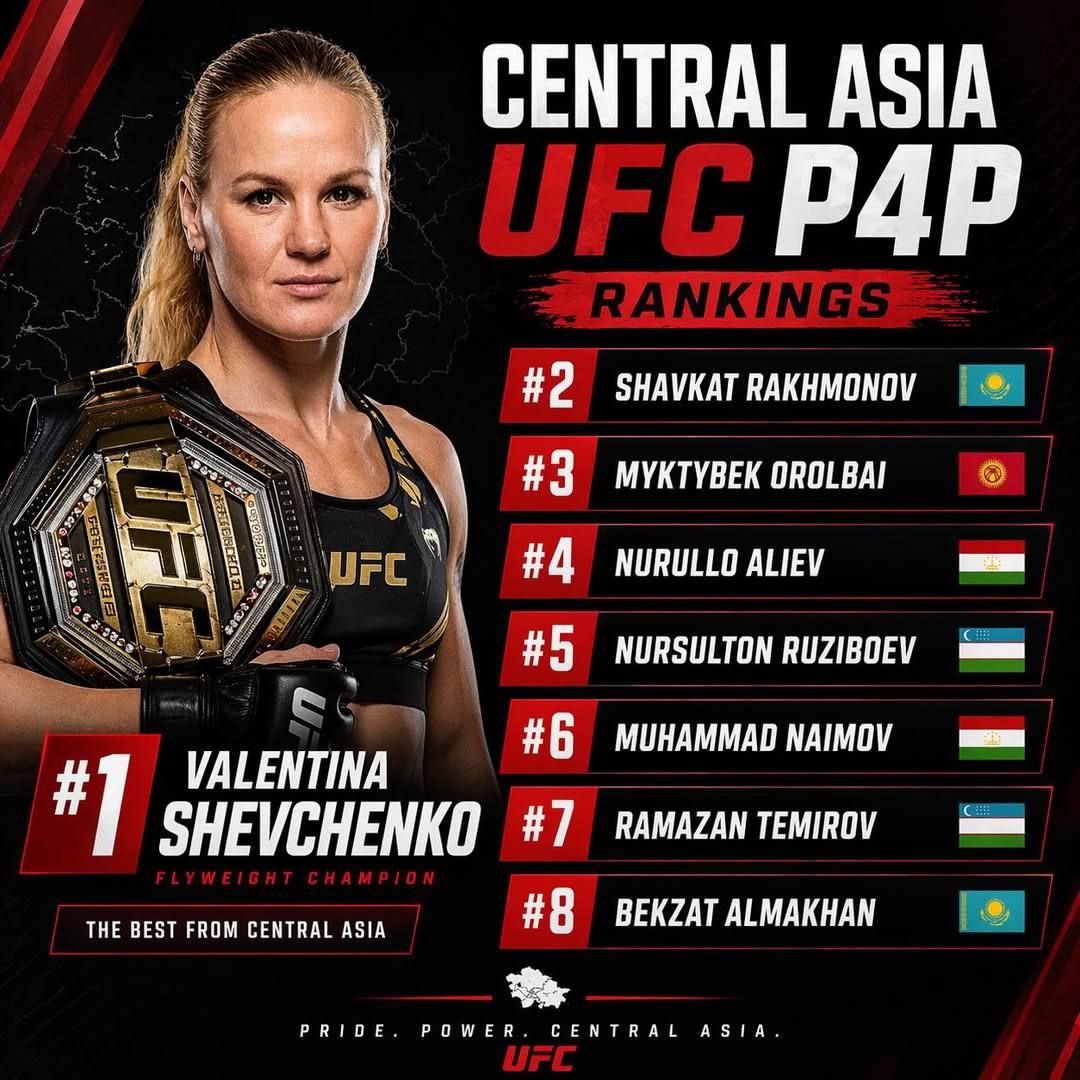 Рейтинг пешқадами сифатида қирғизистонлик UFC чемпиони Валентина Шевченко эътироф этилган. Иккинчи ўрин эса қозоғистонлик титул учун даъвогар Шавкат Раҳмоновга тегишли.