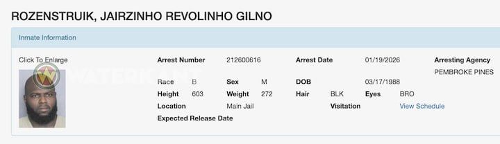 Оғир вазн тоифасида фаолият олиб борган суринамлик собиқ UFC жангчиси Жаирзиньо Розенстрайк 19 январь куни АҚШнинг Флорида штатида ҳибсга олинган.