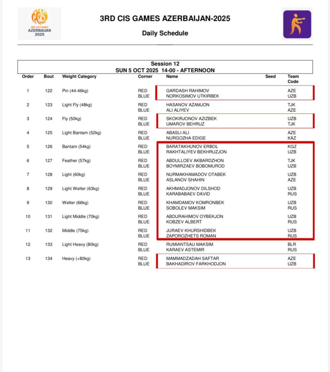 Жанглар Тошкент вақти билан 15:00 дан бошлаб старт олади.