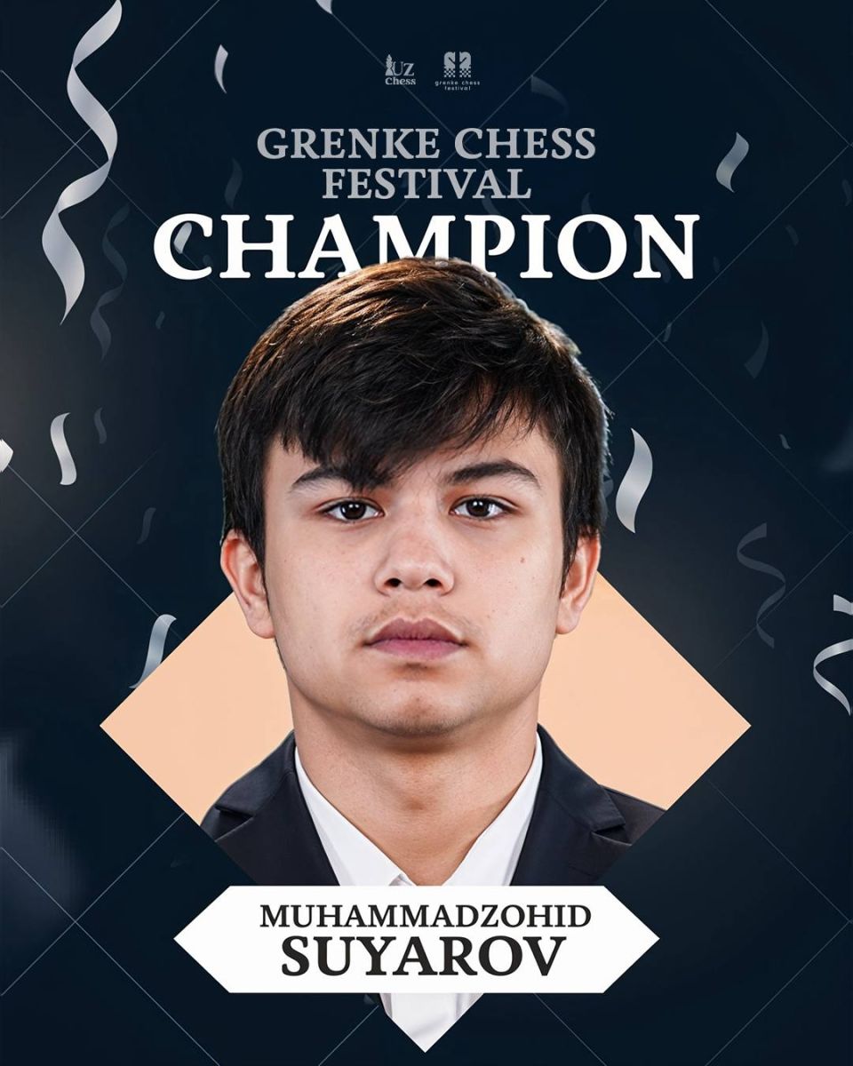 Ўзбекистонлик гроссмейстер Муҳаммадзоҳид Суяров Германияда бўлиб ўтган нуфузли Grenke Chess Open 2026 ғолибига айланди.