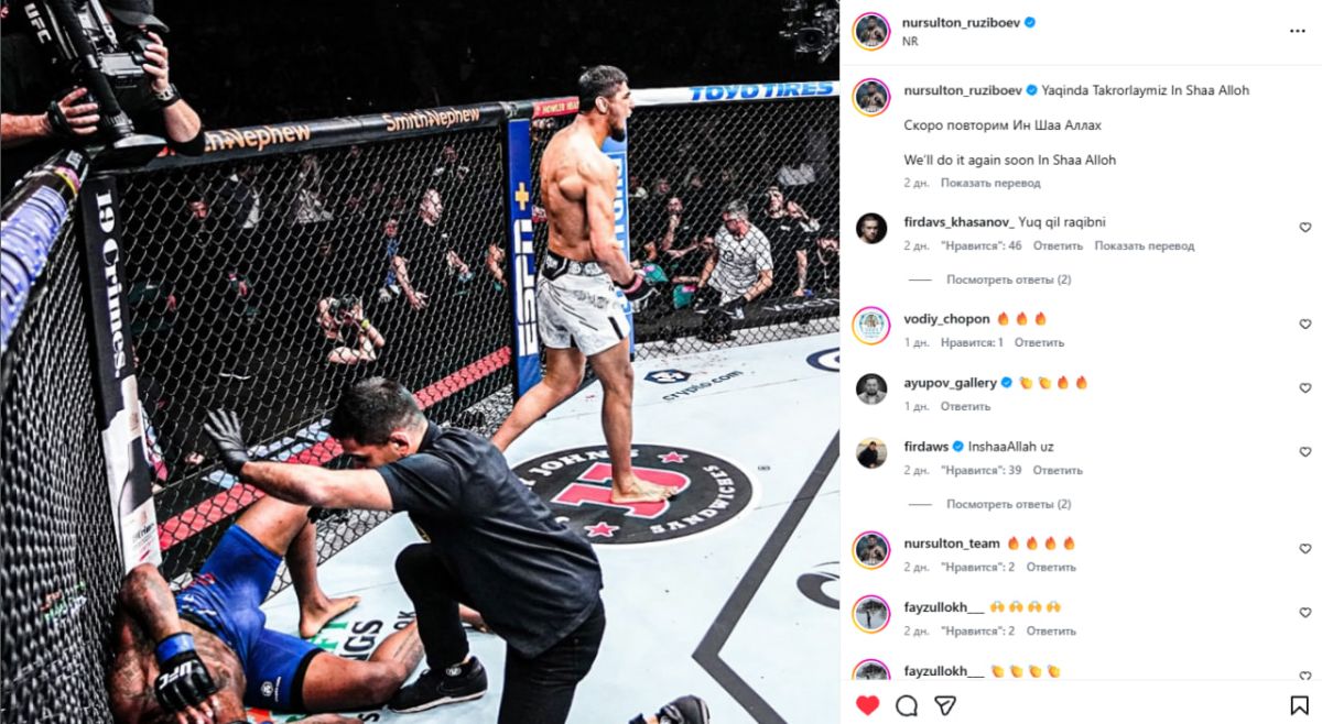У рақибини нокаут қилгани акс этган суратни жойлаштириб, унга "Яқинда такрорлаймиз Иншаллаҳ" дея изоҳ қолдирди.