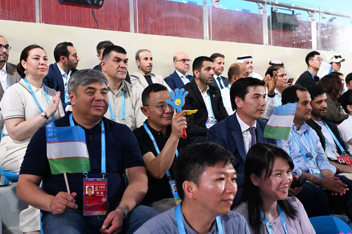 Унда Ўзбекистон спорт делегацияси ҳам иштирок этди. Тантанали маросимда Осиё Олимпия Кенгаши вице-президенти, Ўзбекистон Миллий Олимпия қўмитаси раисининг биринчи ўринбосари Отабек Умаров, МОҚ Бош котиби Ойбек Касимов ҳам расмий шахслар қаторида иштирок этди.