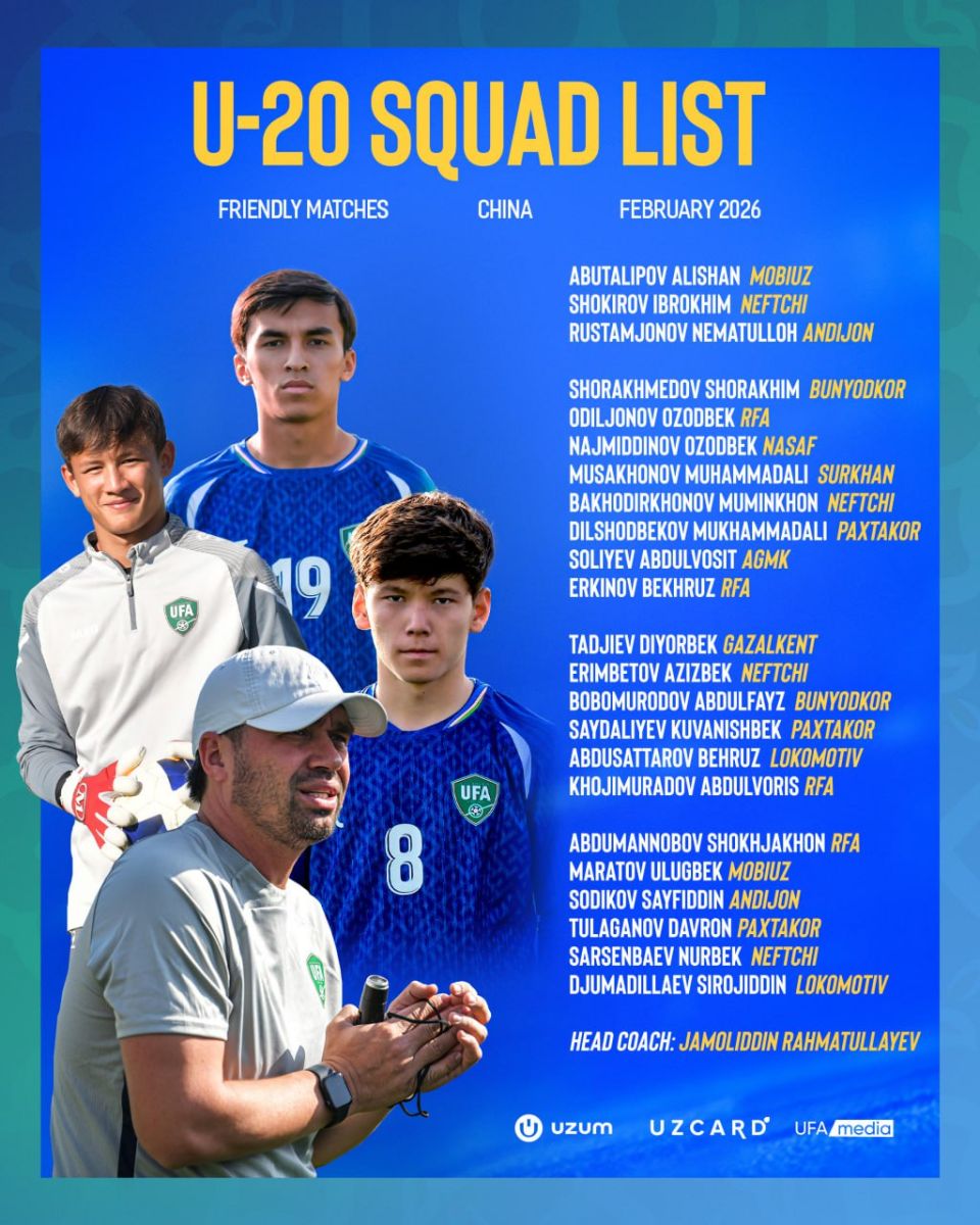 Терма жамоа йиғиннинг иккинчи қисмини 2-10 февраль кунлари Хитойда ўтказади. Терма жамоа 4-9 февраль кунлари Хитой U-20 терма жамоасига қарши иккита ўртоқлик учрашувида иштирок этади.