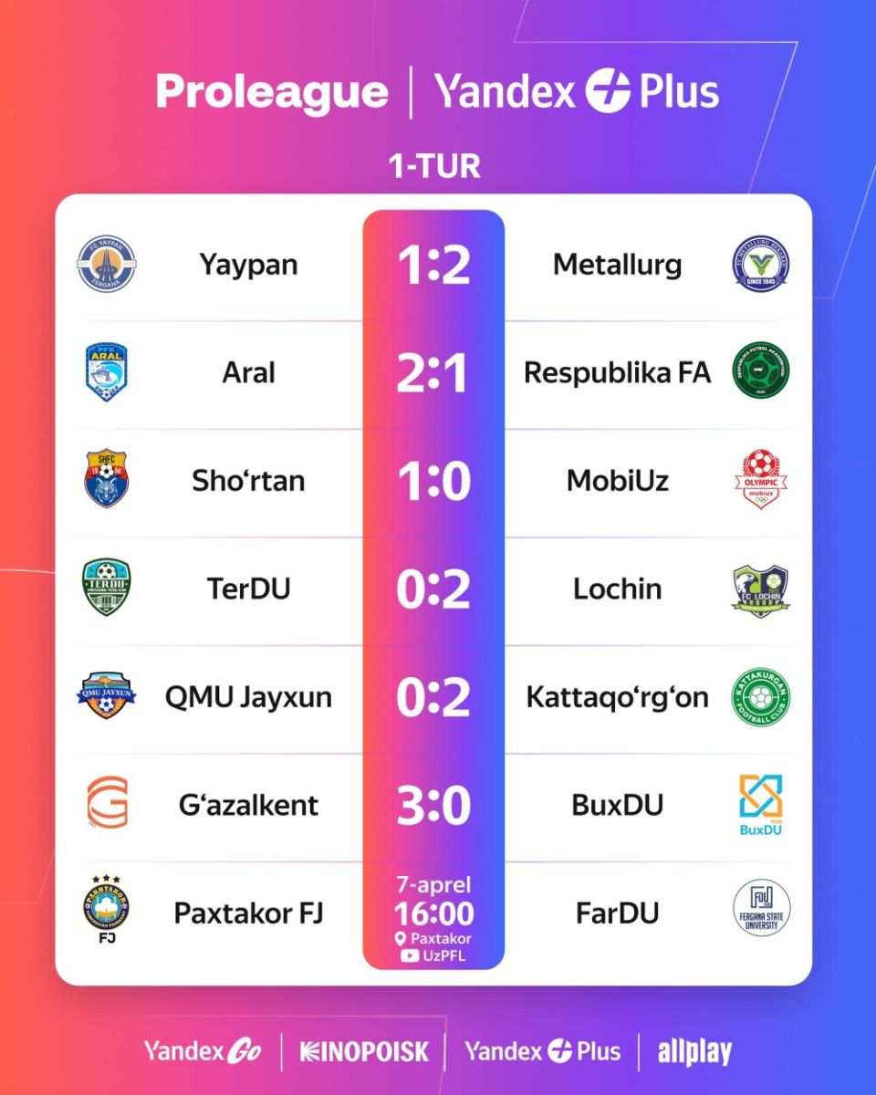 Бугун Пролига баҳсларининг 1-тури якунланади.