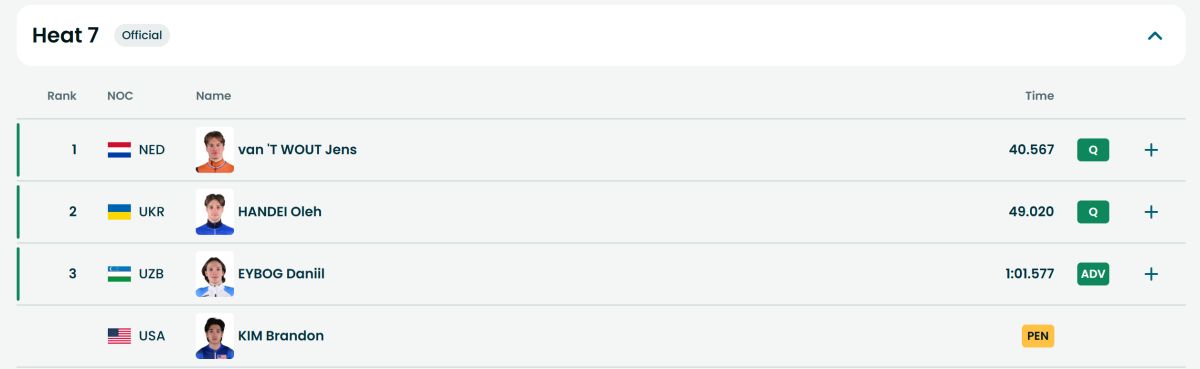 500 метр масофада кечган саралаш босқичида стартга чиққан юртдошимиз квалификациядан муваффақиятли ўтди.