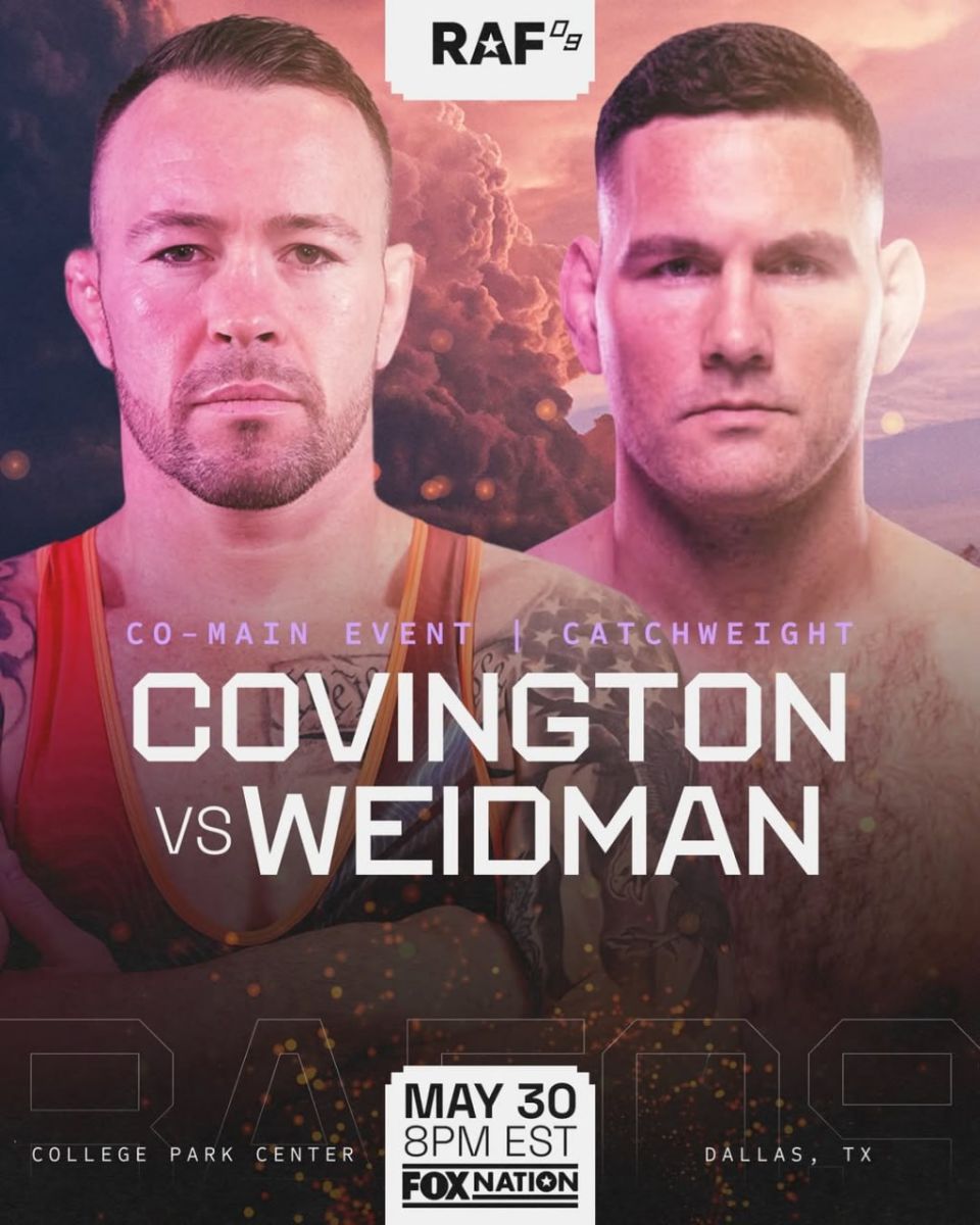 Бундан ташқари, UFC'нинг америкалик юлдузларидан бири Колби Ковингтон турнирнинг иккинчи асосий жанги доирасида оралиқ вазн тоифасида гиламга чиқади. Унга ўрта вазнда UFC собиқ чемпиони, ҳамюрти Крис Вайдман рақиб бўлади.