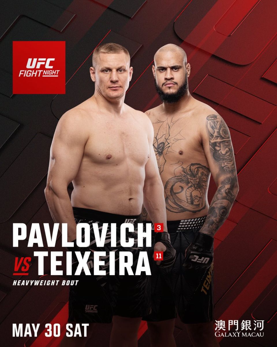 Айни пайтда Сергей Павлович UFC оғир вазнлилар рейтингида учинчи, Таллисон Тейшейра эса ўн биринчи ўринни эгаллаб турибди.