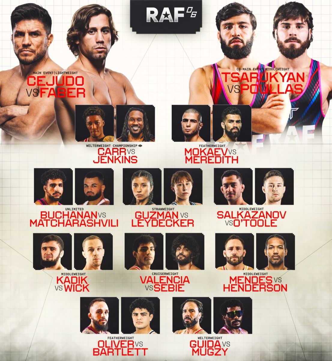 Ташкилотчилар RAF 6 мусобақасининг тўлиқ кардини эълон қилишди.