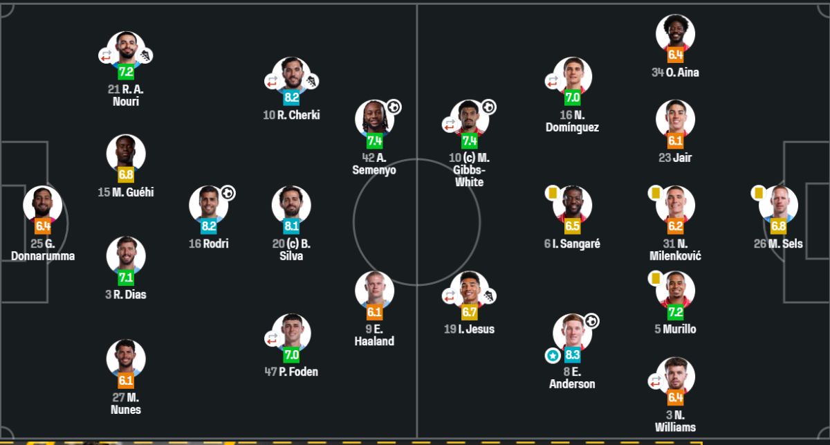 АПЛ 29-тур доирасидаги "Манчестер Сити" — "Ноттингем Форест" учрашуви дуранг (2:2) натижа билан якунланди.