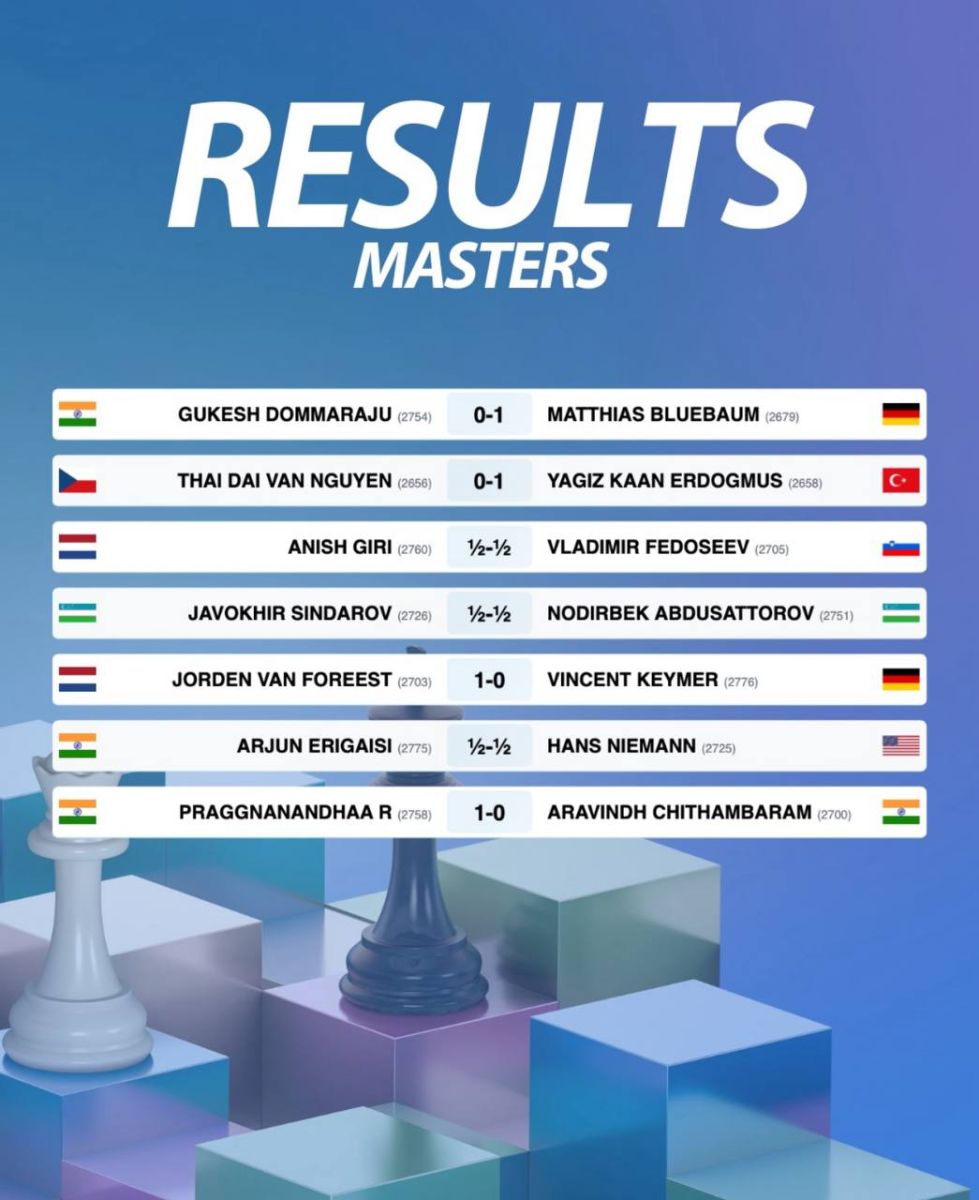 Гукеш Доммаражу (Ҳиндистон) — Маттиас Блубаум (Германия) 0-1