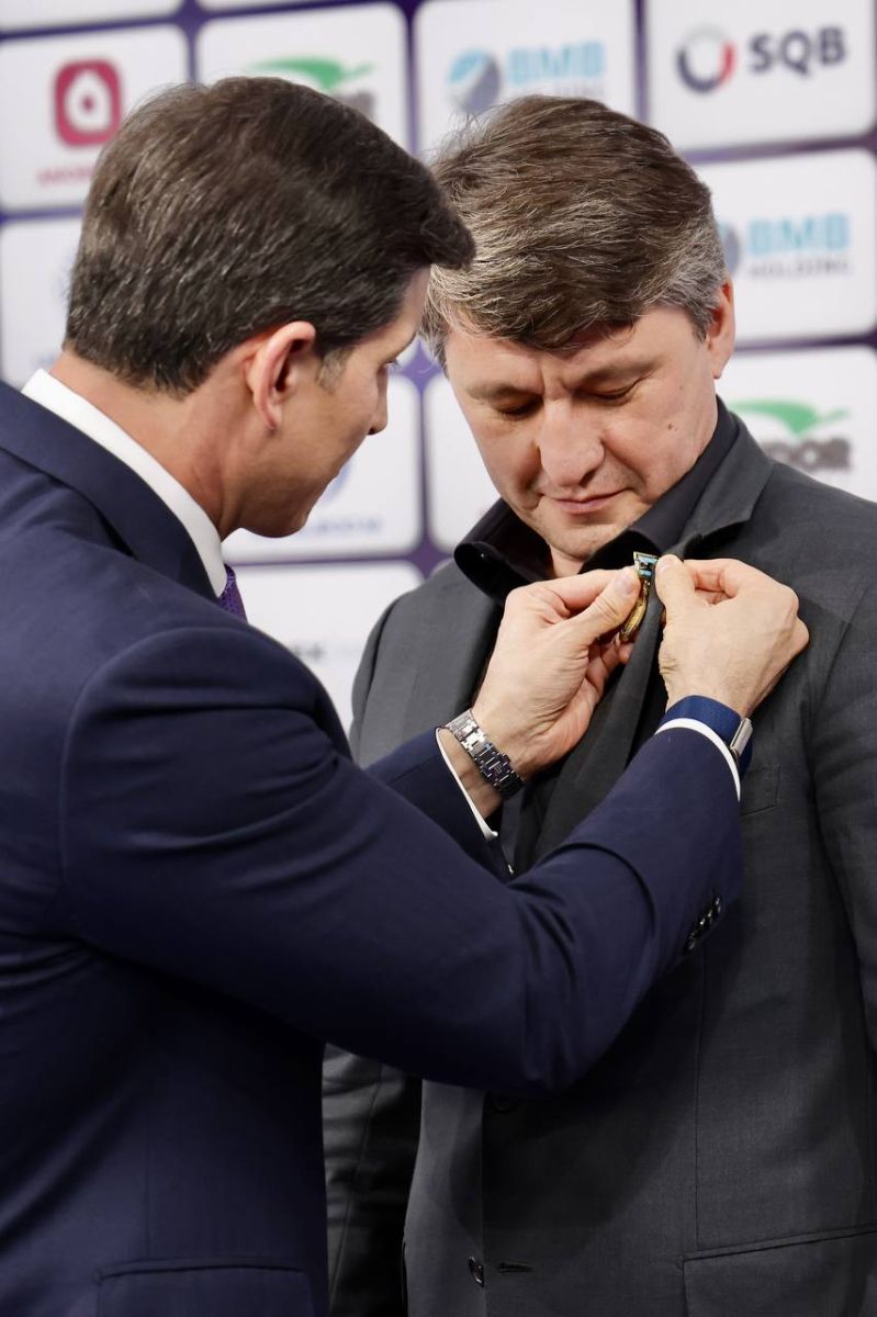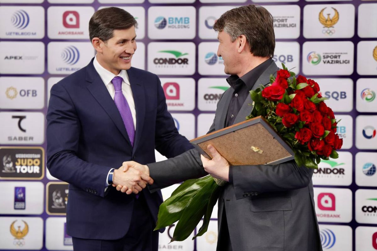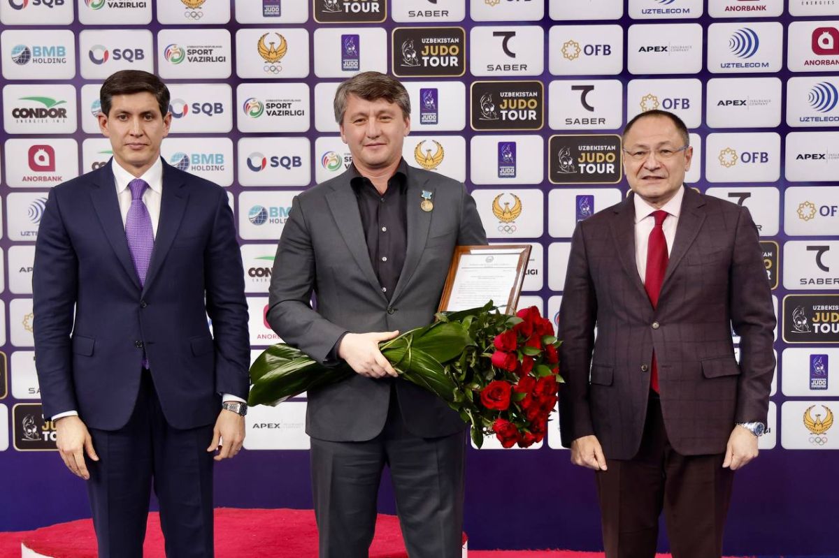 Олимпия шаҳарчасида ўтган “Uzbekistan Judo Tour” мусобақаси 2025 йилги мавсумининг якуний босқичи тақдирлаш маросими чоғида Тошкент шаҳар ҳокими Шавкат Умурзаковга Спорт вазирининг тегишли буйруғига мувофиқ “Жисмоний тарбия ва спорт аълочиси” кўкрак нишони тантанали равишда топширилди.