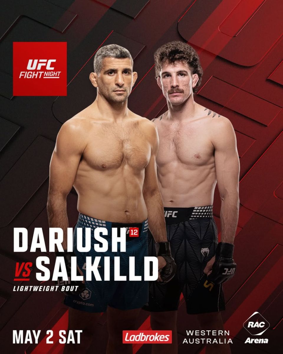 Енгил вазн тоифаси рейтингида 12-ўринни эгаллаб турган тажрибали америкалик Бенил Дариуш эса 2 май куни Австралиянинг Перт шаҳрида ташкил этиладиган uFC Fight Night турнирининг иккинчи асосий жангида мазкур юрт шарафини ҳимоя қилувчи Куинллан Салкиллд билан баҳс олиб боради.