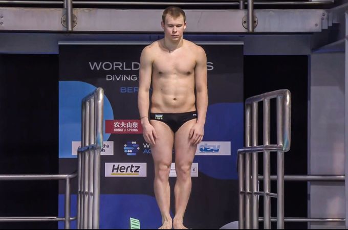 Уч метрли трамплиндан сакраш дастурида қатнашган Качанов 368.85 балл билан учинчи натижани қайд этди.