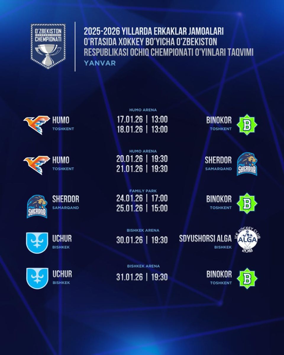 Хоккей федерацияси Ўзбекистон чемпионатининг январь ойи учун тақвимини эълон қилди